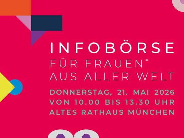 Die nächste Infobörse für Frauen aus aller Welt findet am Donnerstag, 21.05.2026 von 10.00 – 13.30 Uhr im Alten Rathaus München statt.